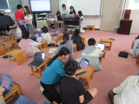 それぞれのタブレットで「かえるの歌」の曲を,アレンジしました。