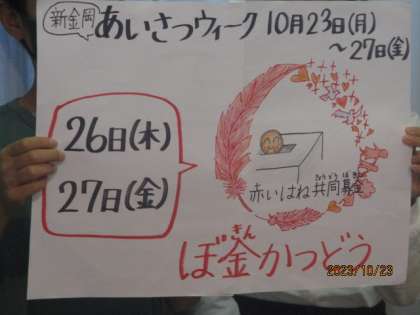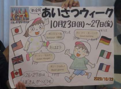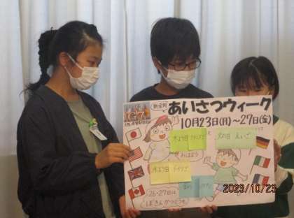 児童会から、今週に行うG7あいさつウィーク」と、週末に行う募金活動についてのお知らせがありました。