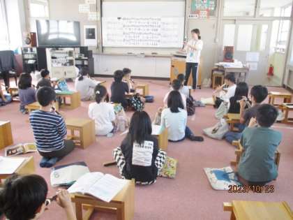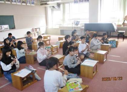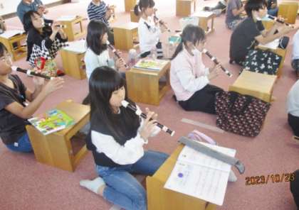 リコーダーで、「茶色の小瓶」の練習をしています。