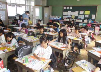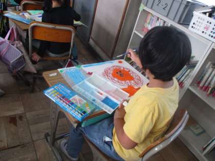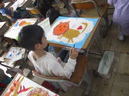 「赤い小鳥とライオン」の絵本を読んで、ライオンがどこに行きたいのか想像をして絵を描いています。
