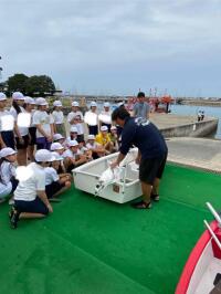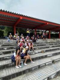 海の活動が終わり、予定を変更しクラスごとに順番で入浴をしています。待っている間は部屋で友だちと過ごしています。