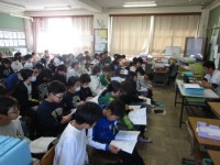 来週の修学旅行に向けて説明会を行いました。しおりを見ながら,2日間の準備物・流れ...