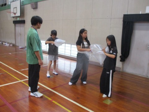 理科の実験…大きなビニール袋に,空気を閉じ込めてみました。
