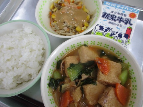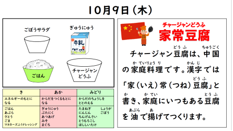 今日のメニューは…チャージャン豆腐。お味噌味がしっかりついた美味しいおかずでした。