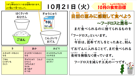 ごはん、牛乳、昆布入りおでん、はくさいのおひたしです。