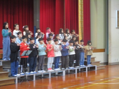 リコーダー演奏と『にじ』の合唱さわやかな歌声は,きっと明日は晴れると感じさせてくれました。