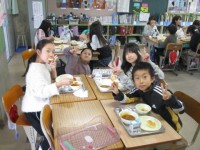 ミニコッペパン、牛乳、ポークビーンズ、ツナとキャベツのソテー、コーンブレッドです。