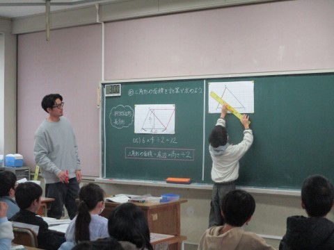 今日のめあては…三角形の面積を計算で求めよう!!これまでの学習を活かして計算できそうかな?