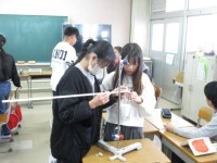 理科の実験中。重さについて…様々な方法で取り組んでいました。
