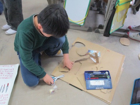 自転車について調べて,段ボールで自転車の模型を作ります。