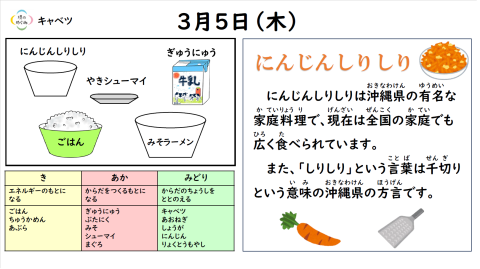 今日は「にんじんしりしり」がメニューにでました。沖縄の家庭料理ってご存じでしたか?