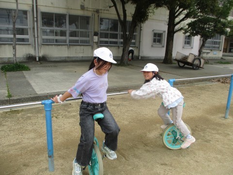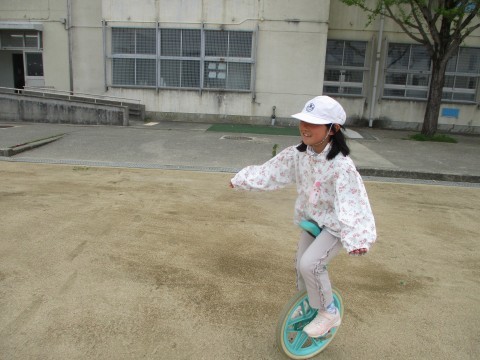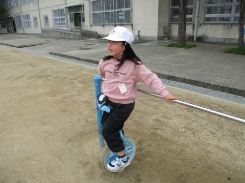一輪車にも上手に乗ります。