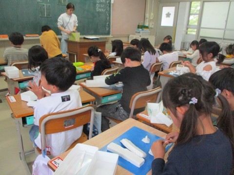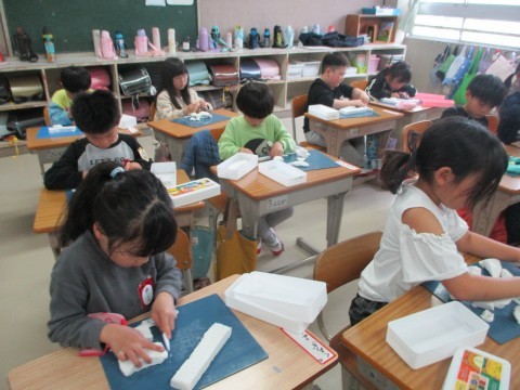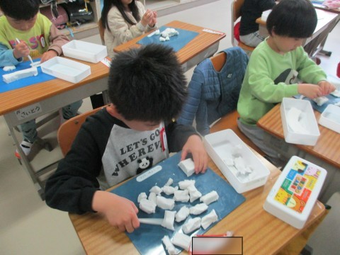 視力検査が早く終わったので,粘土あそびをしました。思い思いに粘土をこねたり丸めたり。集中していました。