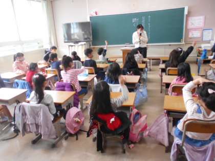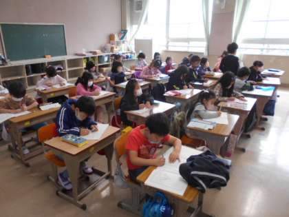 学級開き。友だちが1人ふえて24人になりました。新しい教科書を先生から配い,教科書を見ている子どもたちの表情がとっても楽しそう。子どもたちの進級してうれしい気持ちを感じました。