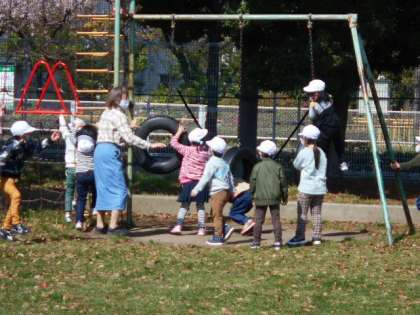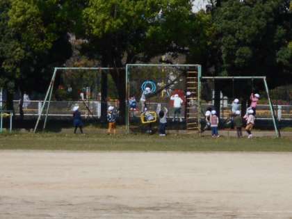 「今日の一年生は…」(1年生 第2日目 ) 公開日 2021/04/09 更新日 2021/04/09 1年生 学校生活二日目。芝生広場の遊具で,友だちと思いっきり体を使って活動しました。今日も楽しく学校での生活を送ることができたようです。
