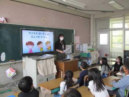 どうしたら新型コロナウィルス感染症にかからないか,保健室の先生のお話を聞きました。