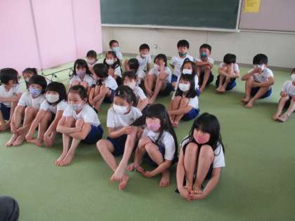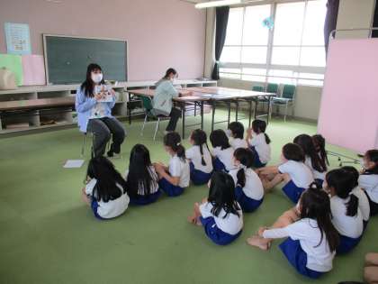 2測定をしている間,保健室の先生から「うんちのお話」をしてもらいました。