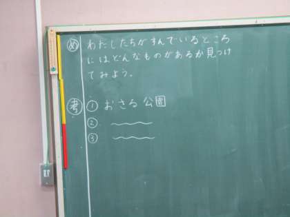 私たちが住んでいる町にあるものを考えました。