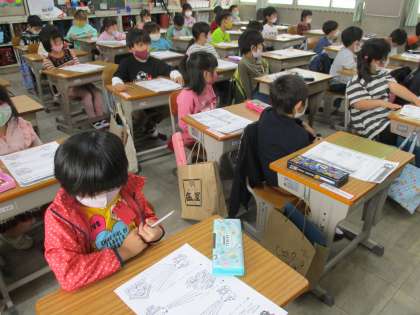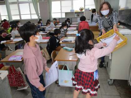 課題のプリントができたらどのように提出するのかを教えてもらいました。
