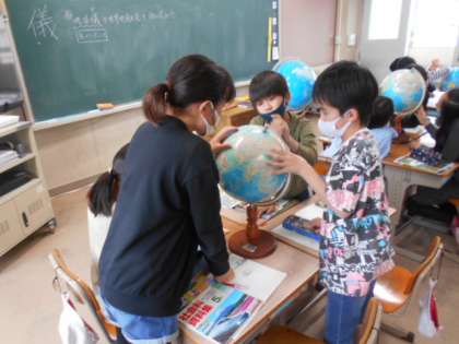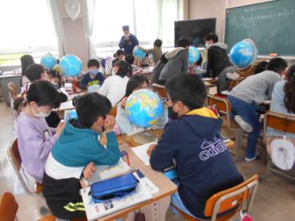 「地球儀や世界地図を見て話し合おう」(5年生)