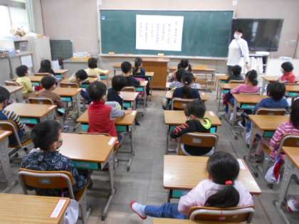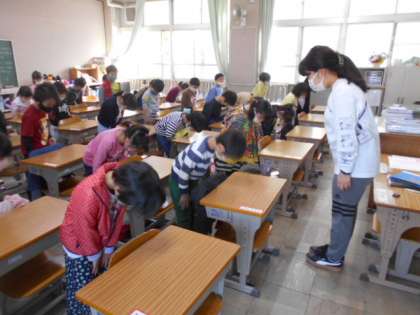 今日は,月曜日にある対面式の練習と字を書く時の正しい姿勢の勉強をしました。対面式のあいさつと並び方の練習や字を書く時の正しい姿勢はバッチリできました。今日も元気でがんばりました。