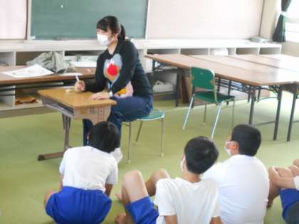 2測定が終わった後で,保健の先生の姿勢の授業がありました。先生の手作りの教材を使ってのわかりやすい授業でした。子どもたち,姿勢が体にとって大切なことを実感したと思います。