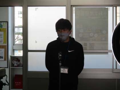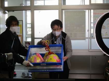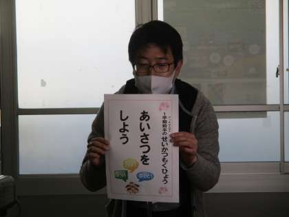 児童会担当の先生が前期児童会役員の紹介をしました。また生徒指導の先生が4月の生活目標について話した後,1年生に渡すボールとながなわの紹介をしました。