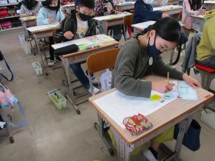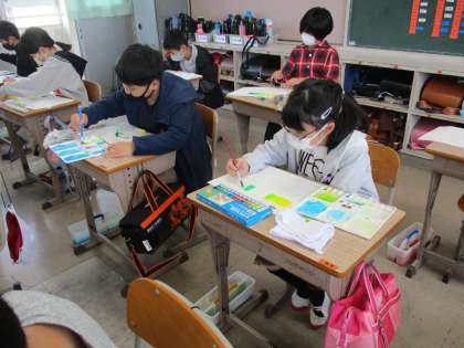 2色の絵の具の比率を変えながら色を塗り,グラデーションを作りました。