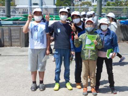「授業が終わっての写真です」(6年生) 公開日 2021/04/19 更新日 2021/04/19 6年生 3時間目は,理科でした。燃える実験を運動場で取り組みました。授業が終わっての写真です。いい顔していました。