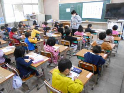 国語では「し」を勉強。プリントに名前もしっかり書けていました。子どもたち,今日も元気にがんばっていました。