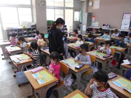 今日は,はじめての6時間の日。5時間目は算数で,数の勉強をしました。やる気いっぱいで楽しそうに取り組んだいました。