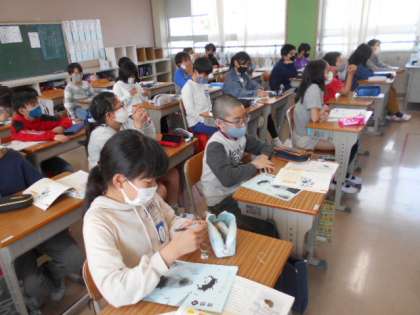 道徳で「まどさんからの手紙」を勉強しました。作家のまどみちおさんの子どもたちへのメッセージ。その一文の「小学生のときは「すごい」とき」について,話し合いました。子どもたちなりに,まどさんの思いを感じてくれたと思います。