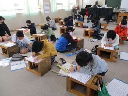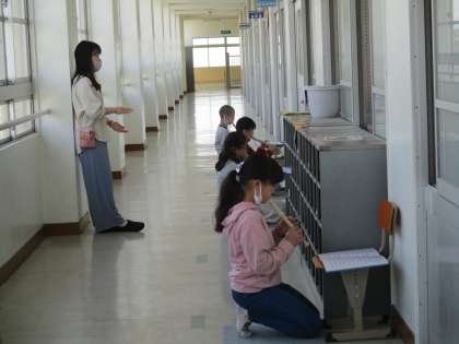 少人数でまた廊下で順番にリコーダーの練習をしました。待っている間,階名別に音符に色をぬりました。