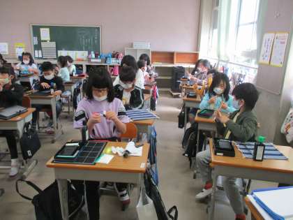 今日は初めての習字の時間です。習字道具の点検をしました。