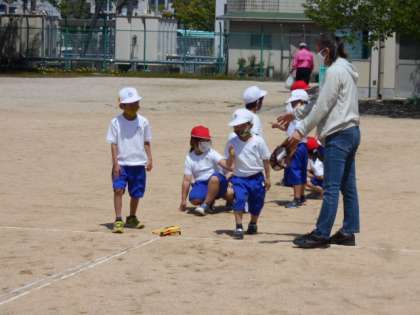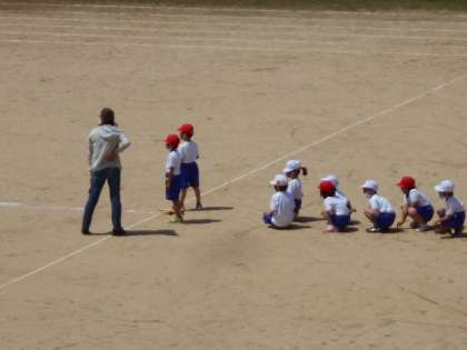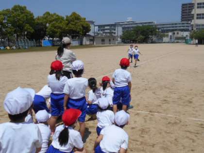 体育で50m走をしました。二人で走ってタイムを計りました。一生懸命走る姿がかっこよかったです。今日も元気でがんばっていました。