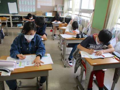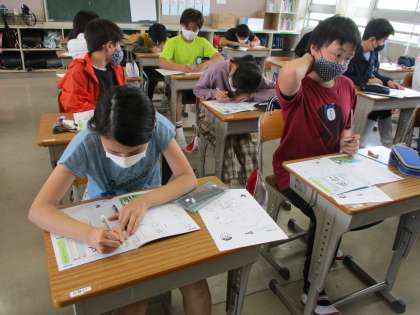 書写シートで漢字を書く練習をしました。