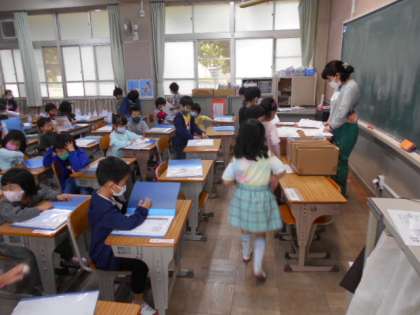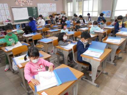 今までがんばって取り組んだプリントを返してもらいました。ファイルにきちんと入れて整理しました。プリントは入学してからの子どもたちの大切な学習の足跡です。