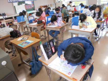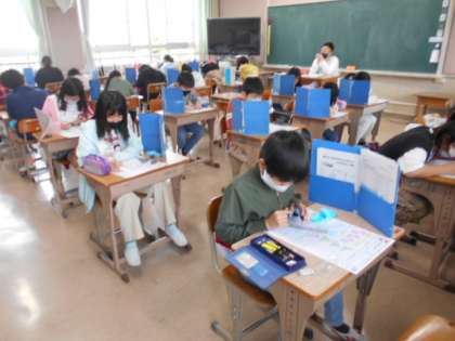 算数の時間は,テストでした。テストは「図形の角と合同」。子どもたち,真剣に取り組んでいました。がんばりました。