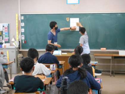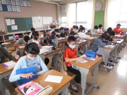 学活の時間。詰将棋にチャレンジ。先生からの説明の後,詰める手を考えました。次の駒の動きを考えることが詰め将棋のポイント。うまく詰められたかな?