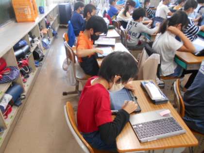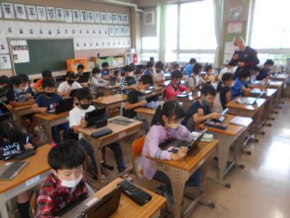 総合でタブレットの使い方を確認。ドリルパークに取り組みました。子どもたちは,うまく使いこなしていました。タブレット,バッチリです。