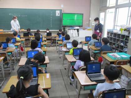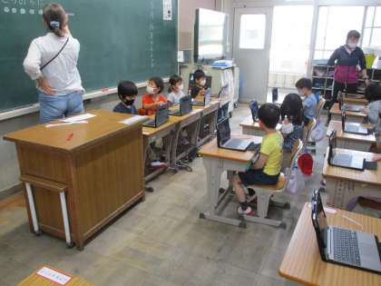 初めてタブレットを使いました。専門の先生にもサポートしてもらい操作の仕方を教えてもらいました。子どもたちは,はじめての「タブレット」に興味津々で取り組んでいました。