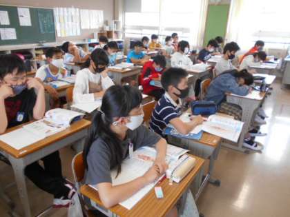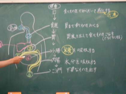 理科で「人の体のしくみ」を勉強しています。今回のめあては「食べ物が体のどこを通ってどのように変化していくか調べよう」。体の消火器官の働きを調べながら,食べ物の体の中の変化の様子を確認できました。体のことがひとつわかりました。