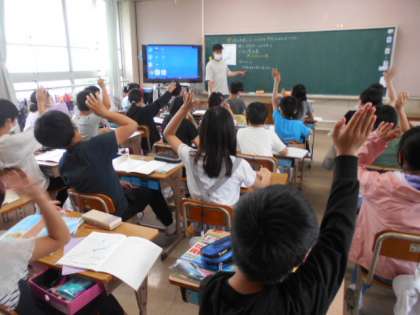 今日の社会科は「日本の気候」について勉強しました。めあては「日本の気候には,どんな特色があるか」。20年間の6月の各都道府県の降水量が変わる資料で調べました。日本の気候は南にいくほど雨が多いことを発見できたようです。