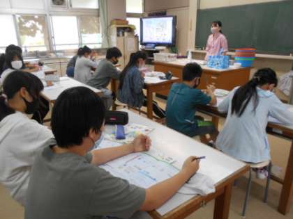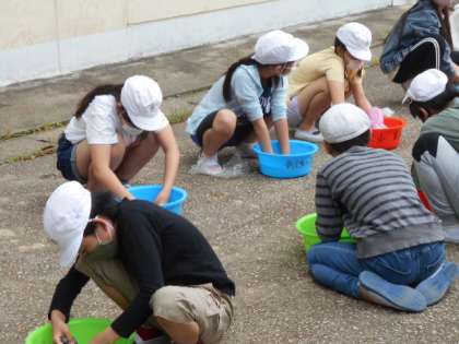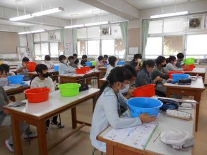 家庭科で,洗濯の実習に取り組みました。はじめに,洗濯についてポイントを確認。そのあと,洗濯をしました。自分の汚れた靴下を一生懸命に洗濯,きれいになったと思います。家でも今日の実習を生かしてほしいですね。