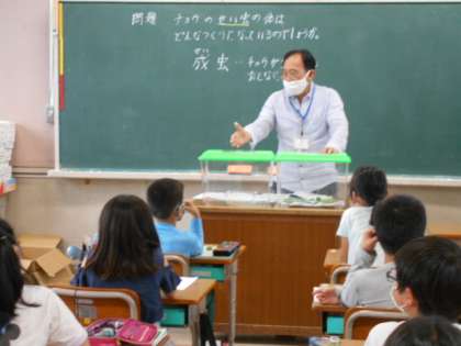 理科で「チョウの成長」を勉強しています。教室のチョウチョもさなぎから成虫になりました。そこで,「成虫の体はどのようになっているのか」について,話し合いました。チョウチョの体のことよくわかったようです。