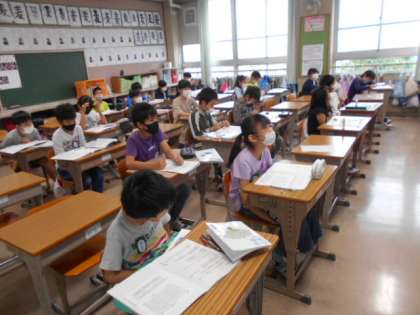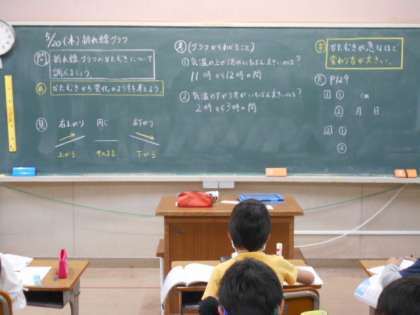 算数の「グラフ」の勉強で,「グラフのかたむきを考えよう」に取り組みました。グラフは,「折れ線グラフ」。グラフの傾きでいろいろな変化がわかることを確認できました。これでグラフが読めます。