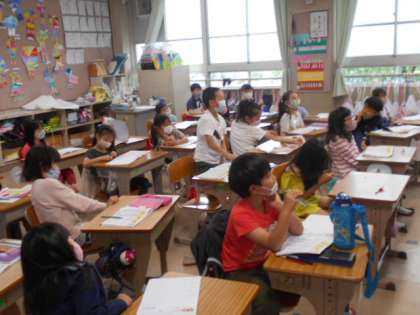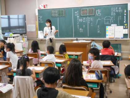 今日の漢字は「店」「姉」「妹」「線」の4つです。読み方や画数などをみんなで楽しく確認。そのあと空書き,練習でしっかり覚えました。