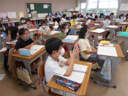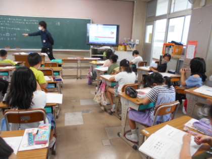 算数で「わり算」を勉強中です。めあては「何倍かを求める計算について考えよう」。まとめで「かけ算だけでなく,わり算も使える」ことがわかりました。どんどん「わり算」のことがわかってきました。