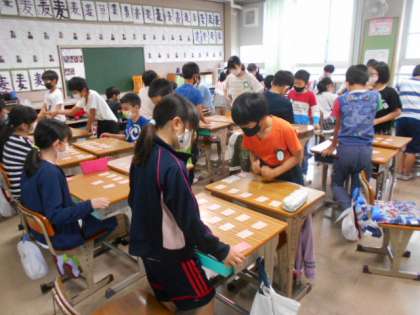 1時間目の学活の時間。はじめに「百人一首」をやり,大いに盛り上がりました。そのあと,日記を「書きたいことを書きたいだけ」書きました。今週はどんなこと書いたかな?