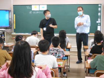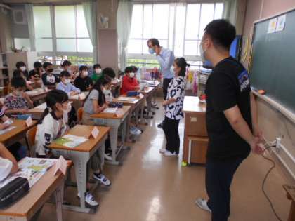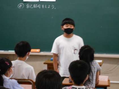 外国語の授業で,自己紹介カードで自己紹介をしました。NSの先生や英語の先生のサポートもあり,少し緊張しながらも,うまく英語でできました。楽しかったようです。